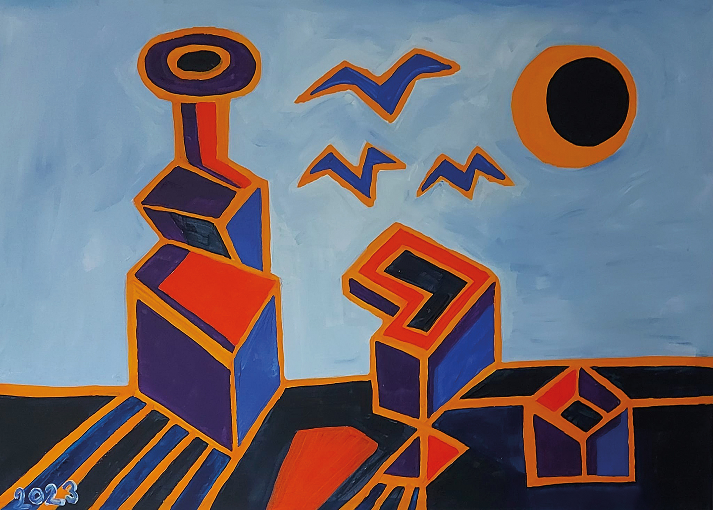 Jeho tvorba zahrnuje motivy zátiší a figur, které tvoří technikou akrylu na plátně. Tato témata ztvárňuje také pomocí linorytů.